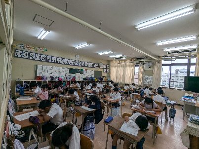 算数の授業の様子です。テストをしていました。最後まで気合を入れてがんばりましょう。