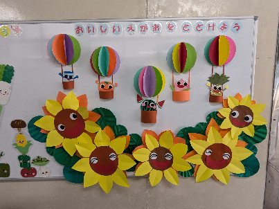 いつも調理員さんたちが、季節に合った壁飾りを作ってくださっています。ありがとうございます。