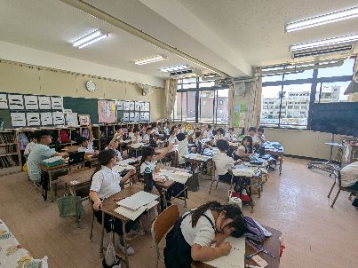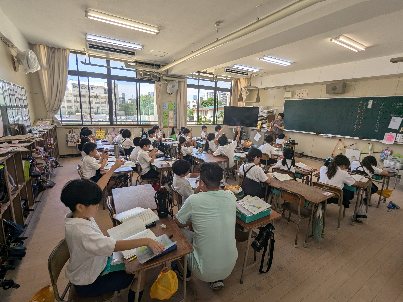 国語の授業の様子です。物語文の「ワニのおじいさんのたから物」の学習をしていました。登場人物の心情を考えていました。