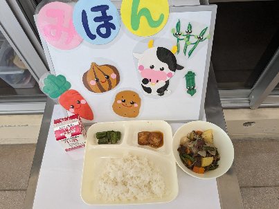 今日の献立は、肉じゃが・あつあげのみそだれかけ・オクラのおかかいため・ごはん・牛乳です。