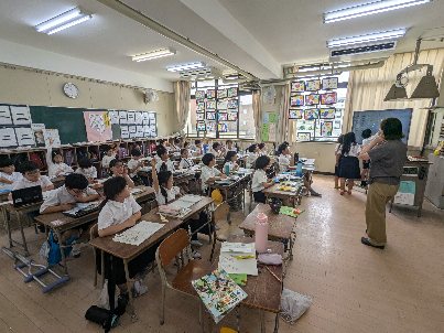 社会科の授業の様子です。大阪の白地図から大阪市を探していました。白地図からだと見つけるのが大変ですね。大阪市の場所が分かったら、次は全ての区の名前も覚えましょう。