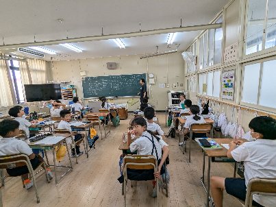 社会科の授業の様子です。米作りについて考えていました。その中で、マイコス米という話が出てきました。皆さんはご存じですか?水をはらない乾いた土地で作ることができる米だそうです。気になる方は調べてみてください。