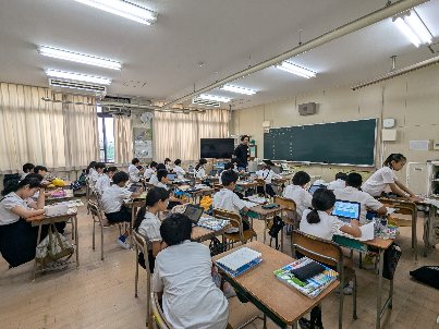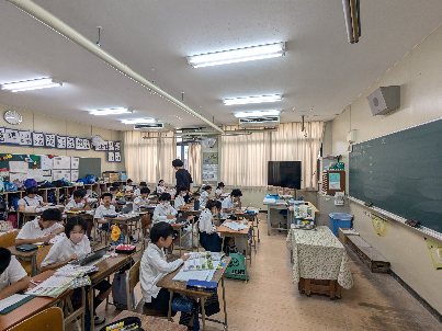 社会科の授業の様子です。1年間の米作りの仕事をまとめていました。近くに田んぼがないので、資料から読み取ることしかできません。でもしっかり覚えておきましょうね。
