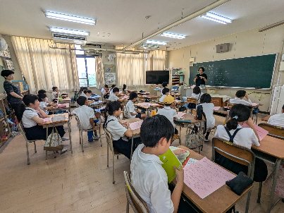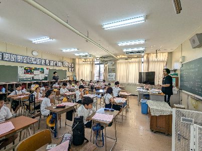 学級活動の授業の様子です。夏休みの芸術作品の募集のお知らせを聞いていました。どの作品を作るのかは、とても重要ですね。得意なジャンルの作品に、時間をかけてチャレンジしましょう。入賞するかもしれませんよ。がんばりましょう。