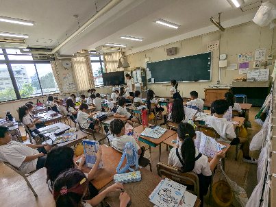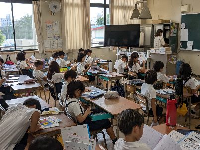 学級活動の授業の様子です。下の教科書や2学期のドリル等を配っていました。下の教科書は、使用するまで間があるので、名前を書いて大切に保管しておきましょう。
