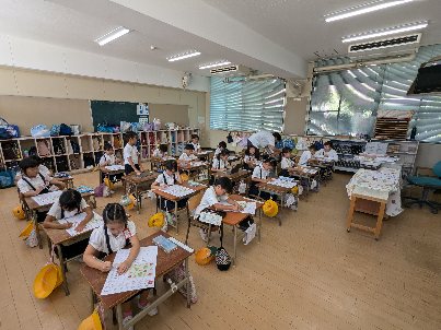 算数の授業の様子です。かぞえ方の学習をしていました。プリントを使って、考えていました。みんなの集中して取り組んでいました。