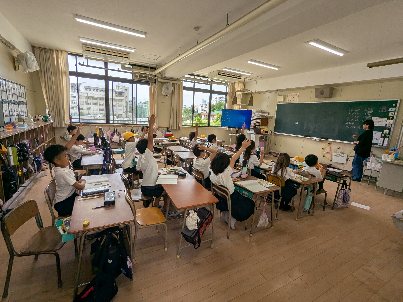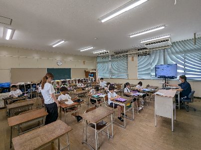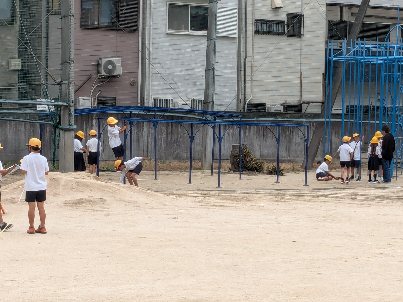 算数の授業の様子です。長さの学習をしていました。習熟度別少人数で学習していました。運動場に出て、花壇や遊具の長さを測っていました。実際に調べることで、長さの感覚が身につきますね。大切な学習です。