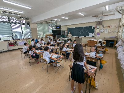 道徳の授業の様子です。「がっこうへいくとき」の題材で、外国人の友達との交流について考えていました。誰とでも笑顔であいさつができるといいですね。みんなならできますよね。