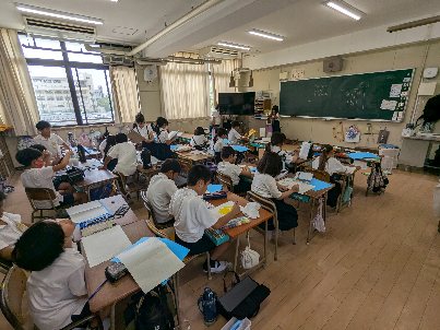 社会科の授業の様子です。大阪府の自然災害について考えていました。台風や地震、高潮、津波、竜巻も発表していました。これ以外にも多くの災害がありますね。皆さん気をつけましょう。