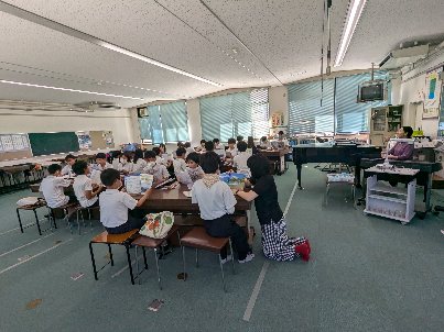 音楽の授業の様子です。「われは海の子」を歌っていました。昔から歌い継がれる文部省唱歌です。私も50年以上前に習いました。3世代・4世代に渡って歌える歌の1曲ですね。きれいな声で、とっても上手に歌っていました。さすが6年生です。