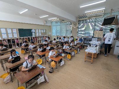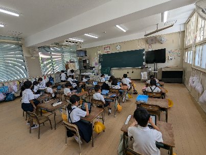 算数の授業の様子です。10より大きい数のテストをしていました。みんな集中してがんばっていました。早く終わった子は、パソコンのドリル機能を使って、学習していました。効果的な活用方法ですね。