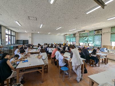 3年生は図工で木工を一緒にしていました。4年生は、算数の授業でした。たくさんの方に来ていただき、冷房も聞かないような状態でした。