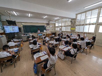 算数の授業の様子です。3つの数の計算をしていました。先生の問いに、積極的に手を挙げて発表していました。だんだん難しくなりますが、集中してがんばりましょう。