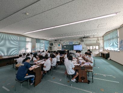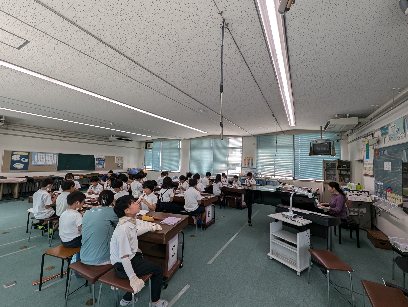 音楽の授業の様子です。アンダーザシーをリコーダーで合奏していました。きれいなメロディーが音楽室に響き渡っていました。皆さんにもお聞かせしたいくらいです。とっても上手です。