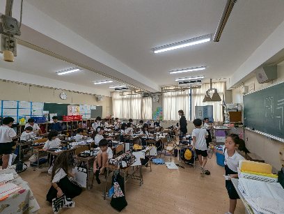 国語の授業の様子です。毛筆の学習をしていました。「日」を書いていました。日は、折れ線を書くのが難しいです。力強くゆっくりと、筆の向きを考えて書くことが大切です。これができるとどんな字にも応用ができます。しっかり習得しましょう。