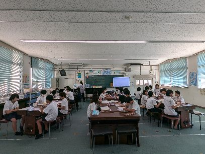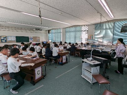音楽の授業の様子です。符点のつく音符について学んでいました。プリントを使っていたので、それに記入して資料として使えます。しっかり覚えましょう。中学校で必ず役に立ちます。