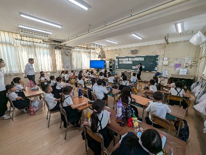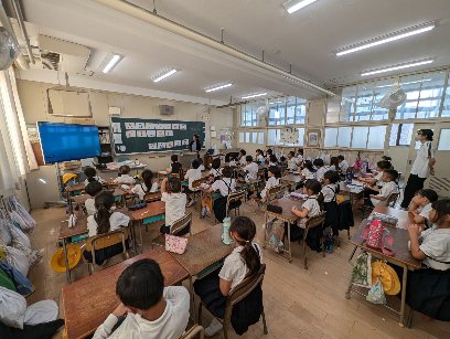 学級活動の授業の様子です。C−NETから英語の授業を受けました。アルファベットを学習していました。ランダムに出されたアルファベットのカードを、きれいな発音で答えていました。みんな覚えているのですね。すごいですね。