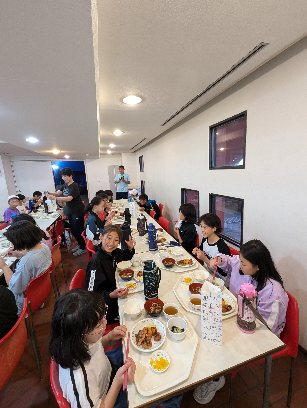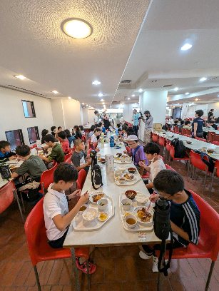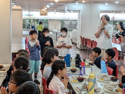今日は体験活動が2つ続いたのでお腹が空いたでしょう。この後は、朝食まで食べられないのでしっかり食べましょう。