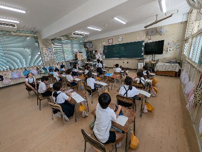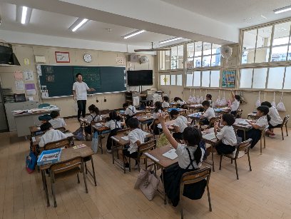 算数の授業の様子です。長さの学習をしていました。持ち物の長さ比べをしていました。筆箱や教科書等を比べて、長さのの感覚をつかみます。みんなしっかり手を挙げて、意見を発表していました。