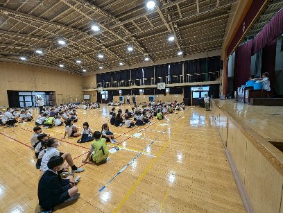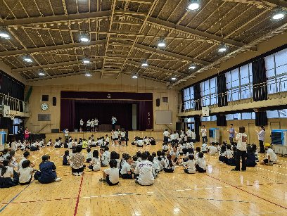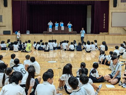 講堂で児童集会を行いました。今日は、水に入ってるバケツ当てクイズでした。集会委員の演技がうまく、全問正解した班は、2つの班だけでした。2つの班は、みんなから称賛されました。