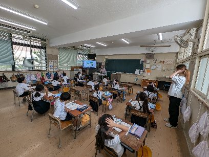 算数の授業の様子です。文章題の足し算の問題を解いていました。問題を読んで、キーワードを見つけて線を引いて考えていました。大切なことです。何年生になってもこの作業をすることが、早く解くコツです。忘れないでください。