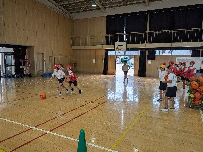 体育の授業の様子です。講堂でバスケットボールの学習をしていました。ゲーム形式の練習をしていました。早く、技やルールを覚えて試合がしたいですよね。がんばりましょう。