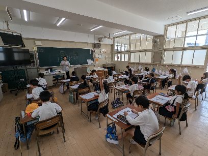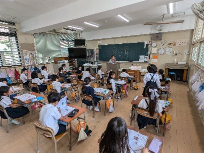 国語の授業の様子です。新出漢字の学習をしていました。「出」と「力」を学んでいました。普段の会話によく出てくる漢字なので、使って書いて覚えましょう。