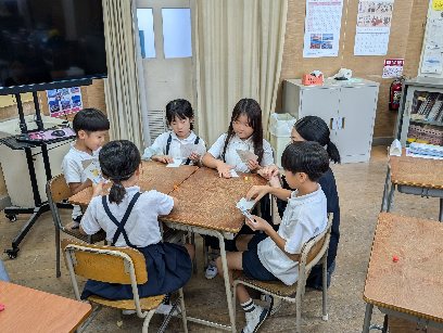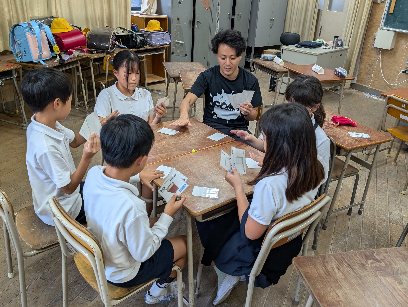 民族クラブの活動を行いました。今日は、先週使ったカードで、カードそろえゲームをしました。いらないカードを1枚隣に送り、早く4枚のカードをそろえるゲームです。みんな先週習った単語をしっかりと覚えていました。