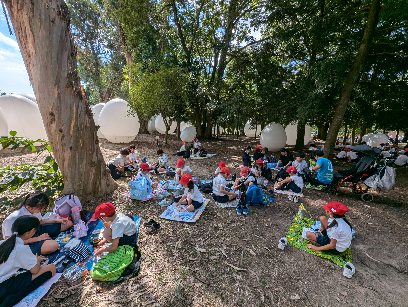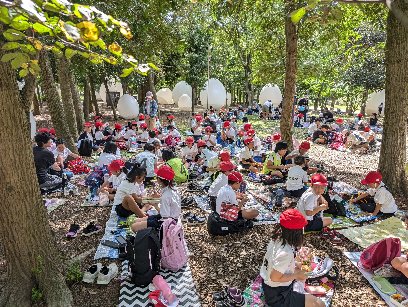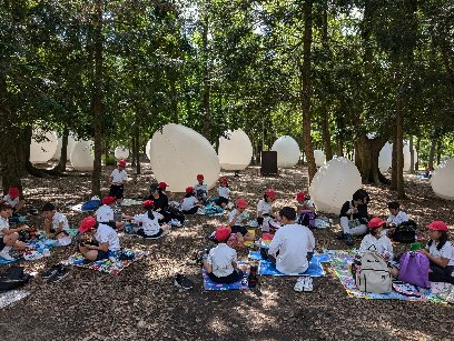 お昼ごはんの様子です。班ごとに集まって食べました。