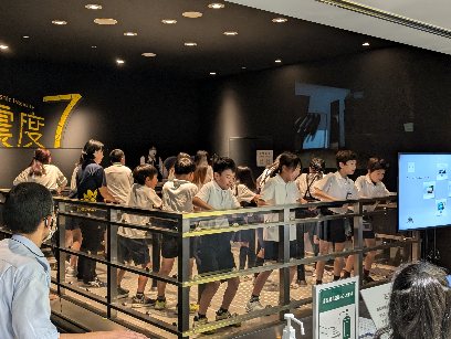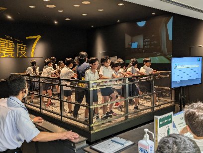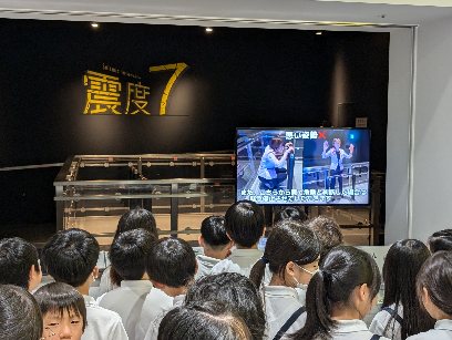 見学の様子です。地震の揺れ体験をしました。阪神・淡路大震災と南海トラフ地震の体験です。