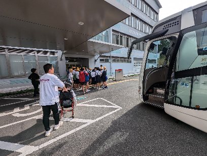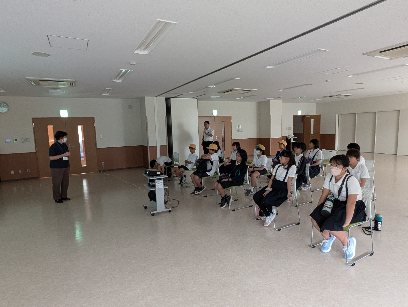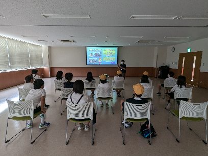 伊勢市防災センターに着きました。今から津波等の体験活動をします。映像で学習をしています。