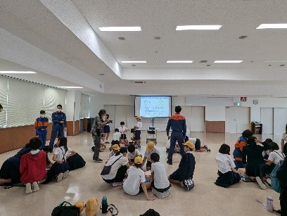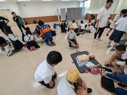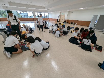胸骨圧迫をしながら、AEDの使い方も体験しました。