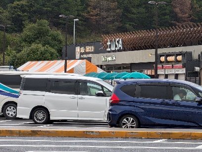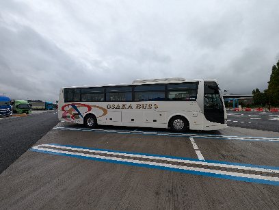 土山サービスエリアに着きました。途中事故渋滞もあり、学校着が30分以上遅れます。