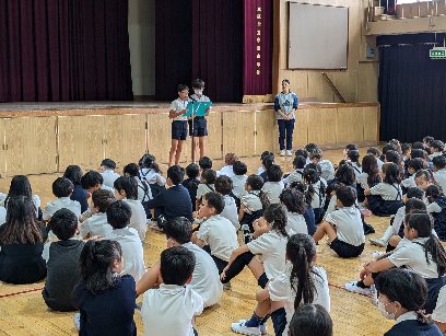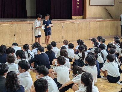 引き続き、看護当番から、先週の反省と今週の目標についてのお話がありました。最後に給食委員会から、残食調べのお知らせがありました。