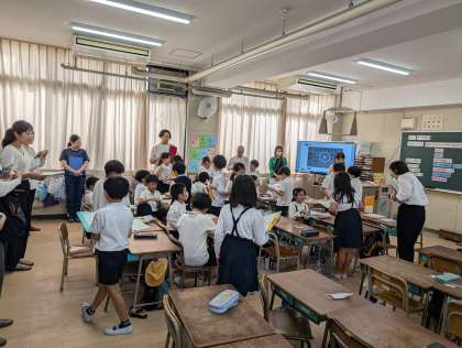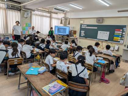3年1組で、東成区の外国語活動の授業研究会が行われました。緊張しながらも、子ども達は、授業を楽しんでいました。元気よく歌を歌い、アルファベットのお店屋さんでは、英会話をしながら、自分の必要なアルファベットを集めていました。本当によくがんばっていました。