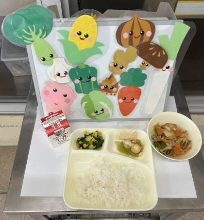 今日の献立は、ジャージャンどうふ、チンゲンサイのオイスターソースあえ、まっ茶白玉のきな粉がけ(きな粉)、ごはん、牛乳です。今日の献立は、学校給食献立コンクール最優秀作品です。