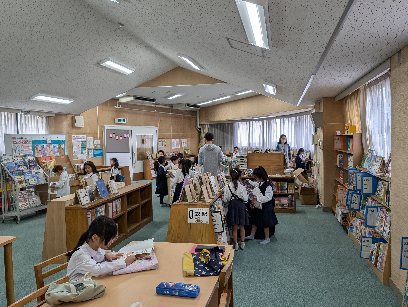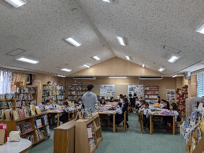 国語の授業の様子です。図書館で読書活動をしていました。自由読書で、みんな読みたい本を興味津々で探していました。たくさん本を読みましょう。