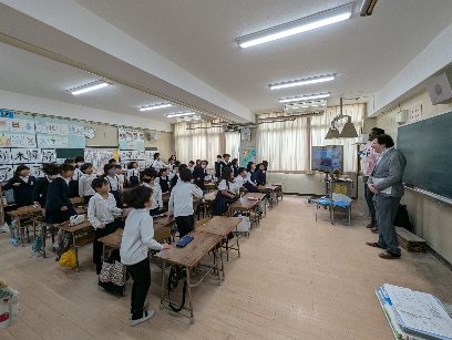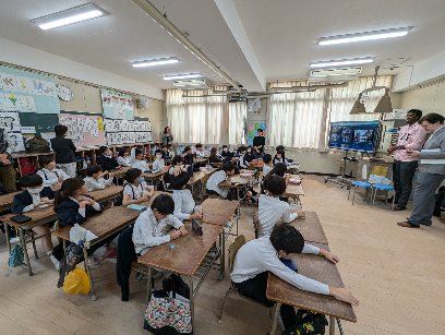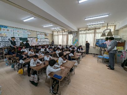 国際理解教育の出前授業で、ジャイカの研修員の方から、ケニヤについて教えていただきました。画像や動画を使って国のことを紹介してくださいました。子ども達は、興味津々で聞いていました。最後に動画に合わせて、みんなで一緒にジャンプをしました。教室が揺れていました。