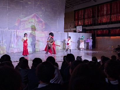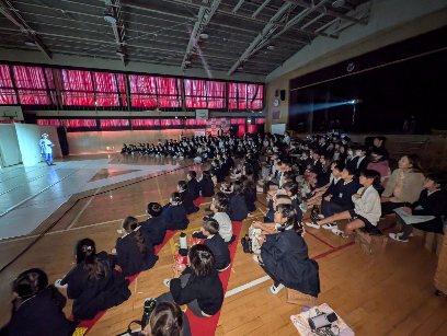最後に劇団の方々に子ども達から大きな拍手が送られました。劇団の皆さん、歌あり・ダンスあり・映像あり・ゲームアリ・英語あり・吉本あり、本当に楽しかったです。劇団KIOの皆さん、ありがとうございました。