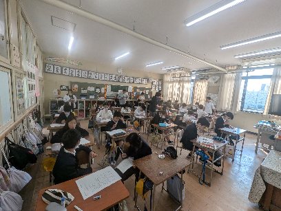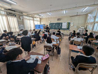 授業研究会の様子です。熟語の分類について学習していました。先生たちが見守る中、子ども達は、熟語を6つに分類していました。みんな積極的に手を挙げて授業を盛り上げていました。