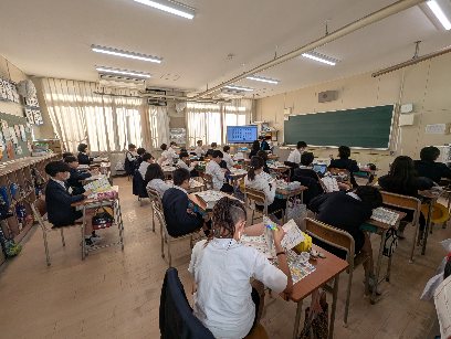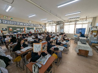英語の授業の様子です。場所を探す(Where)の学習をしていました。図書館等に行くための道案内の会話をします。うまく説明できるようにがんばりましょう。