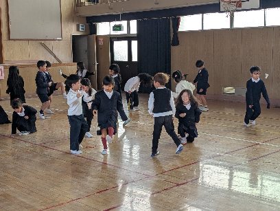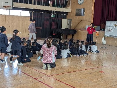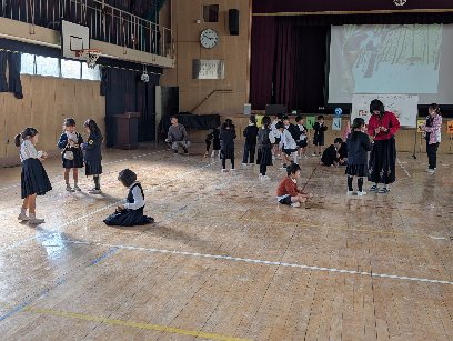 特別活動の授業の様子です。講堂で、ソンセンニムから韓国・朝鮮の文化について教えていただきました。画像を見ながら学習し、韓国・朝鮮の遊びの「ペンイ」と「チェギ」を使って遊びました。初めて遊んだ子も多かったのですが、ペンイを上手に回し、チェギを連続して蹴っていました。とても上手でした。