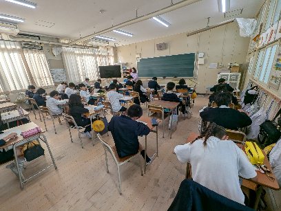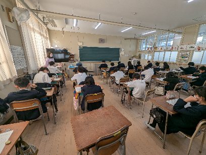 音楽の授業の様子です。教室でテストをしていました。2学期で習った内容のテストです。みんな集中して取り組んでいました。