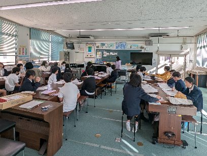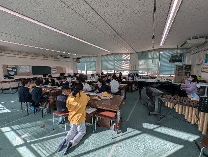 音楽の授業の様子です。3連符について学習し、曲に合わせて手拍子で感覚をつかんでいました。早く手をたたかないと遅れてしまいます。しっかりリズムをつかみましょう。