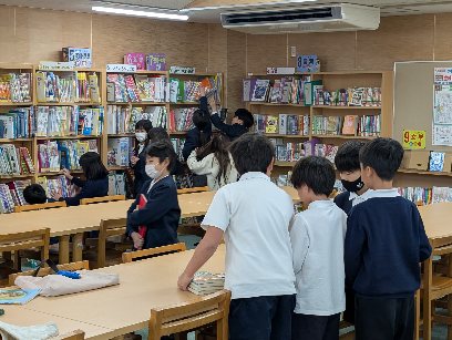 読書活動の様子です。図書館で冬休み用の本を借りていました。4冊まで借りることができるので、時間をかけて選んでいました。いろいろな種類の本を読んで、興味の幅を広げていってほしいです。
