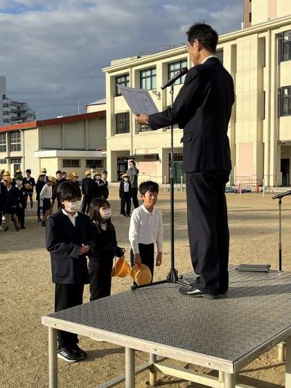 全校朝会の中で、3人の子ども達の表彰を行いました。税の習字と消防図画の表彰です。これからも全校朝会で表彰を行いますから、皆さんもどんどんコンクールにチャレンジしましょう。