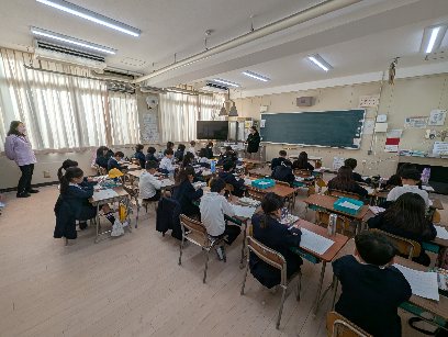 算数の授業の様子です。2けたのたし算の復習をしていました。プリントの答え合わせをしていました。1人ずつ大きな声で答えを発表していました。
