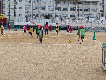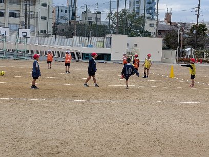 体育の授業の様子です。運動場でボールを使った運動をしていました。ボールをける運動なのでサッカーにつながりますね。しっかり練習して上手になるようにがんばりましょう。