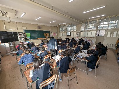 国語の授業の様子です。唱歌「雪」の視写をしていました。一字ずつていねいに書いていました。教室に掲示するのかな?がんばりましょう。