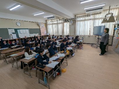 国語の授業の様子です。俳句学習をしていました。3年の教科書には、与謝蕪村や中村草田男の俳句がでていました。難しい言葉もありますが、がんばって覚えましょう。